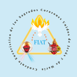 - El logo debe representar al Espíritu Santo (paloma) en la parte superior. o Debajo, formando un triángulo, el Sagrado Corazón Eucarístico (derecha) y el Doloroso e Inmaculado Corazón de la Madre Celestial (izquierda). o En el centro del triángulo, la palabra «FIAT» en color azul (de la Cruz Gloriosa). o Alrededor, el nombre completo del grupo: «Cenáculo Eucarístico de los Sagrados Corazones Unidos de Jesús y de María».